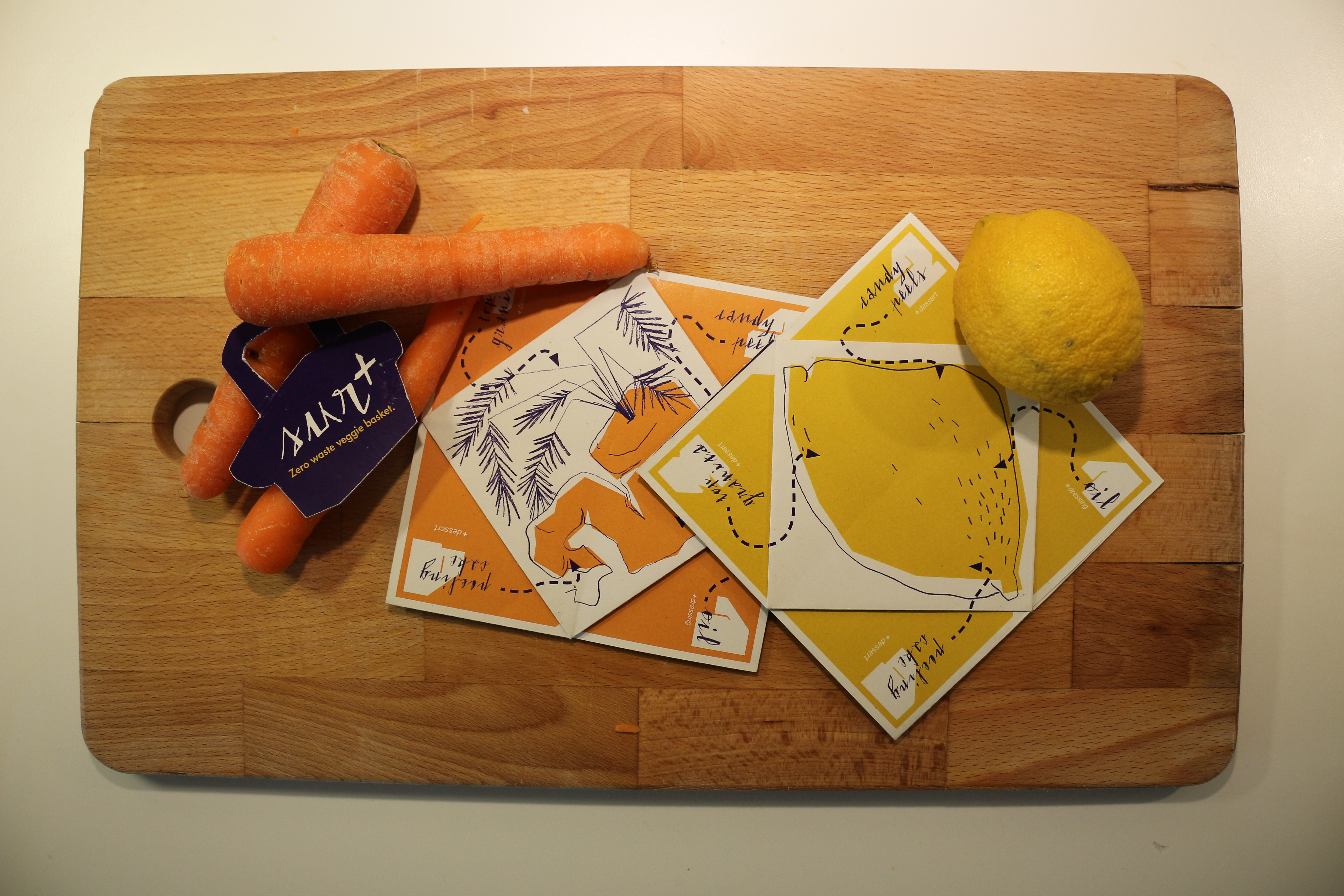 Surplus is a series of recipe from the scraps of our fruits and veggies! Designed as a folded poster, the recipes would be integrated to a delivery food basket (such as Eat Grim, promoting the use of the not-so-pretty ingredients) and educate the basket receivers on the various use for what they would normally throw away.